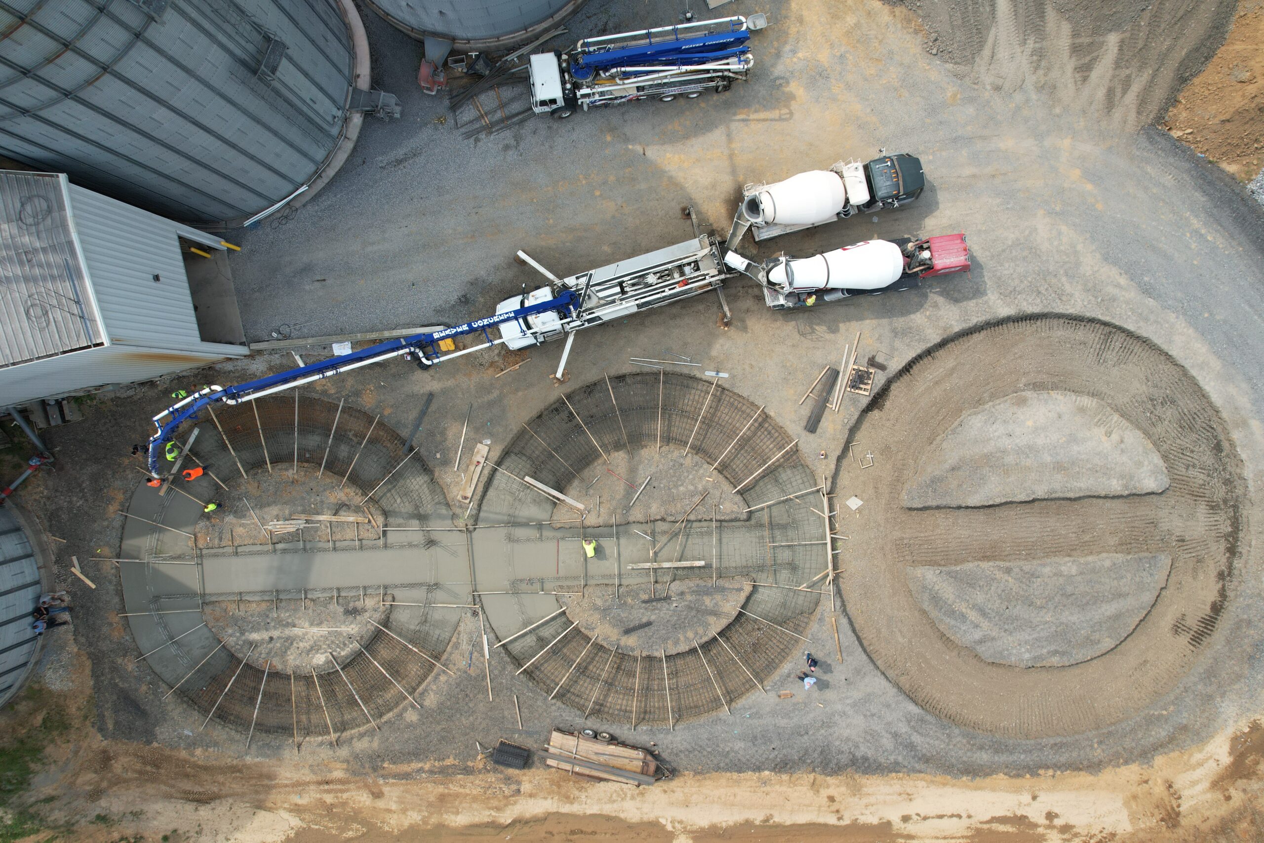 - 60′ grain bin foundation, complex rebar detail with 10″ pad thickness